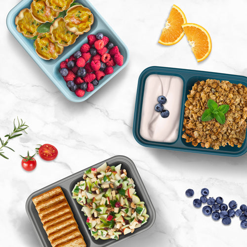 Our reusable snack prep containers are PFAS and BPA-free and easy to clean, freeze, microwave, and serve to save you time in the kitchen.
