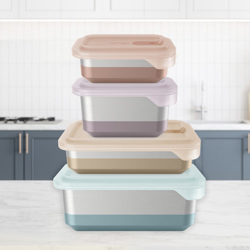 - Material: Microwavable MicroSteel 304 (18/8) Stainless Steel Container, Silicone Lid, Food-safe materials (No BPA, Vinyl, Lead, or PVC)
