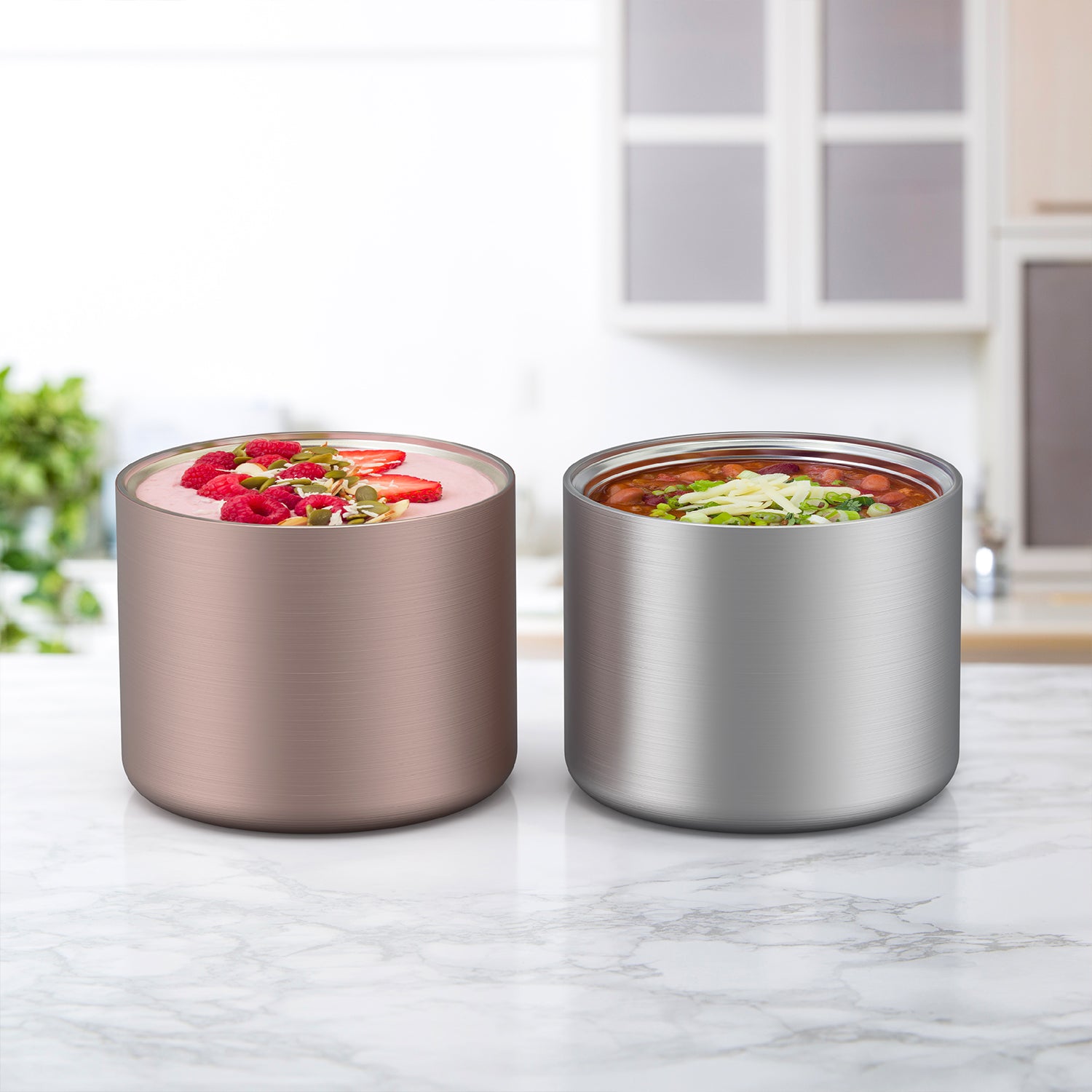 Take your meals on the go with the Bentgo Stainless Insulated Food Container, designed to keep food warm or cool for hours. Featuring triple-layer vacuum insulation and double-walled stainless steel, it ensures your meals stay at the perfect temperature – whether you’re packing warm soup, chili, stews, or cold meals like yogurt and smoothie bowls. The leak-proof, airtight lid with a pressure release valve ensures easy removal when packing warm foods, while the generous 2.4-cup capacity is perfect for a full meal. Travel-friendly and practical, the wide-mouth design, built-in handle, and sweat-proof exterior make it simple to carry and conveniently use on the go. Crafted from premium BPA-free, food-grade 18/8 stainless steel, it’s durable, odor-resistant, and a sustainable alternative to storing soups in plastic containers – making it the perfect companion for work, school, and more!